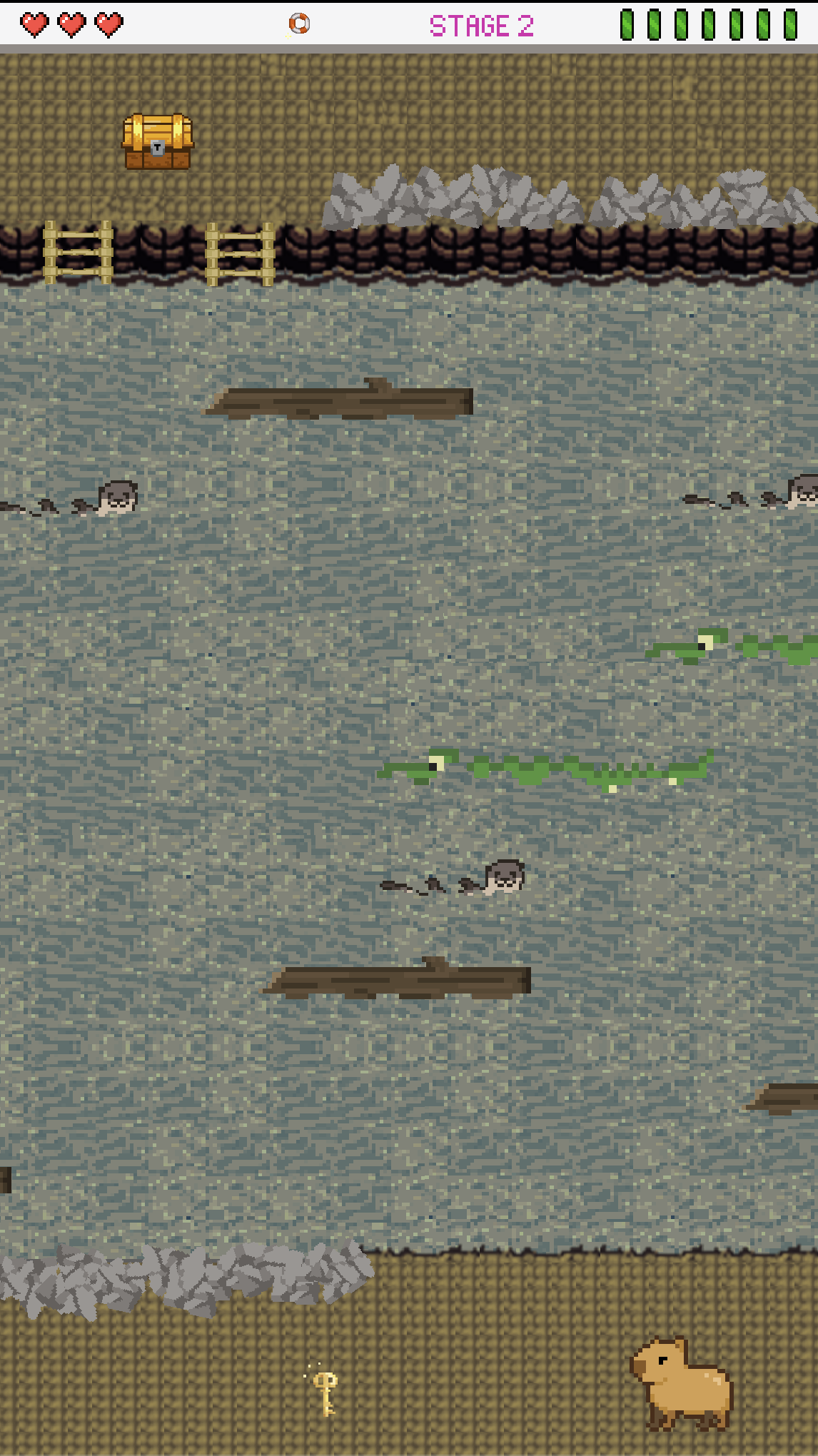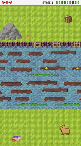 Capyvaara is a simple and fun game where you help a capybara cross a dangerous river.